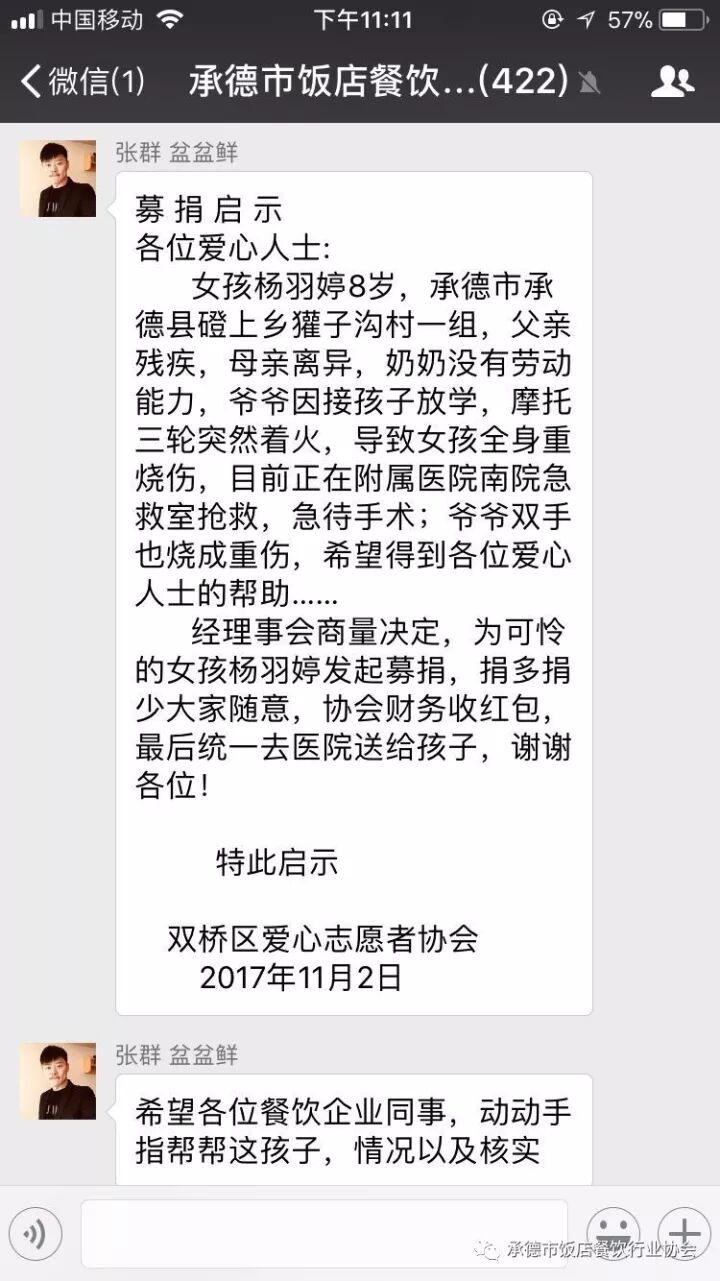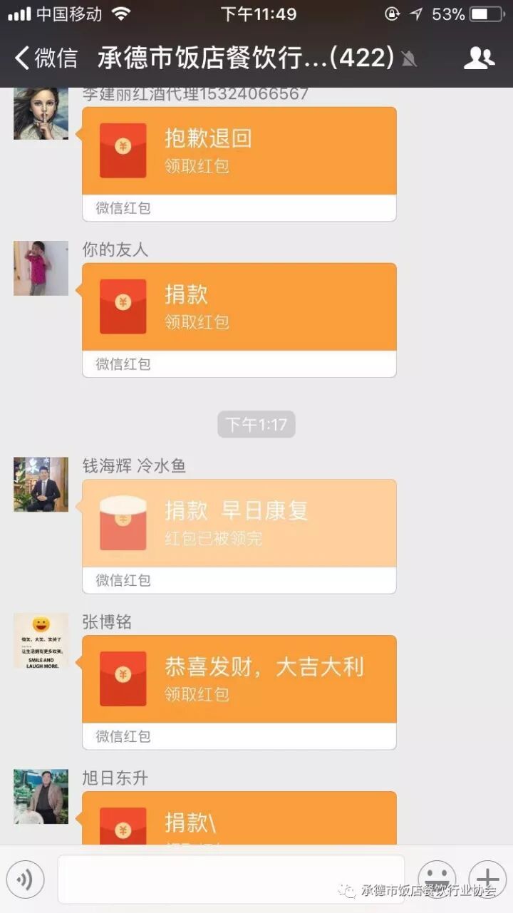 各位餐饮同仁被这个小女孩的遭遇和伤情震撼,纷纷慷慨解囊,从今天凌晨开始陆陆续续将捐款发到群里,虽有误领,但都自觉地退回到群里。