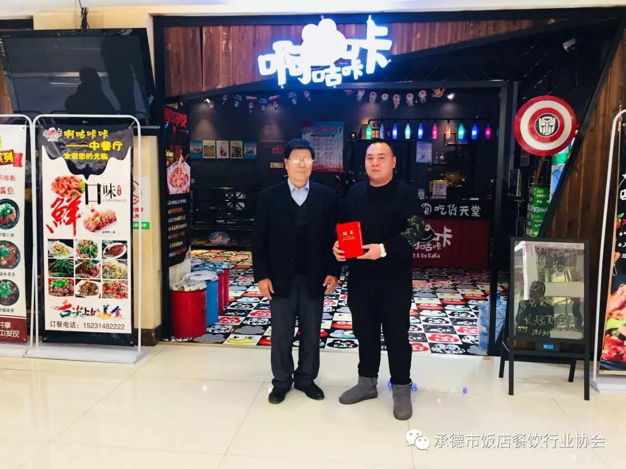 在啊咕咔咔牛蛙大咖主题餐厅,该店负责人康总系统地介绍了企业的经营理念、品牌运营,发展方向,服务品质提升等几个方面。侯会长认真听取了企业负责人的介绍,并不时地询问一些实际经营中的问题。侯会长说,啊咕咔咔牛蛙大咖主题餐厅作为新兴连锁优秀风味餐饮品牌,在大城市深得广大年轻消费群体的追捧,引入承德后,它独特料理的牛蛙和小龙虾立即成为承德“吃货”群体中的焦点。其个性化的就餐环境和独特的食材既保留了食材原有的纯正味道,又符合承德人的口味与饮食习惯。他的匠心独运,深耕细作,将品牌打造的独具一格,深入民心,每天的客人都是络绎不绝。侯广江会长接受其成为承德市饭店餐饮行业协会理事单位的申请并颁发了聘书。