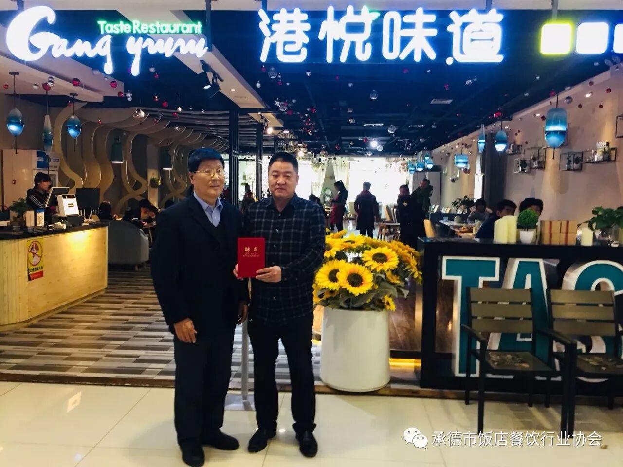 在港悦味道,该店负责人王总系统地介绍了企业的经营理念、品牌运营,发展方向,服务品质提升等几个方面。侯会长认真听取了企业负责人的介绍,并不时地询问一些实际经营中的问题。侯会长说,港悦味道作为本土优秀餐饮品牌,在开业后深得广大年轻消费群体的追捧。其典雅的环境和经营的各种粤菜风味菜品既保留了粤菜原有的纯正味道,又符合承德人的口味与饮食习惯。他的匠心独运,深耕细作,将品牌打造的独具一格,深入民心,每天的客人都是络绎不绝。侯广江会长接受其成为承德市饭店餐饮行业协会理事单位的申请并颁发了聘书。